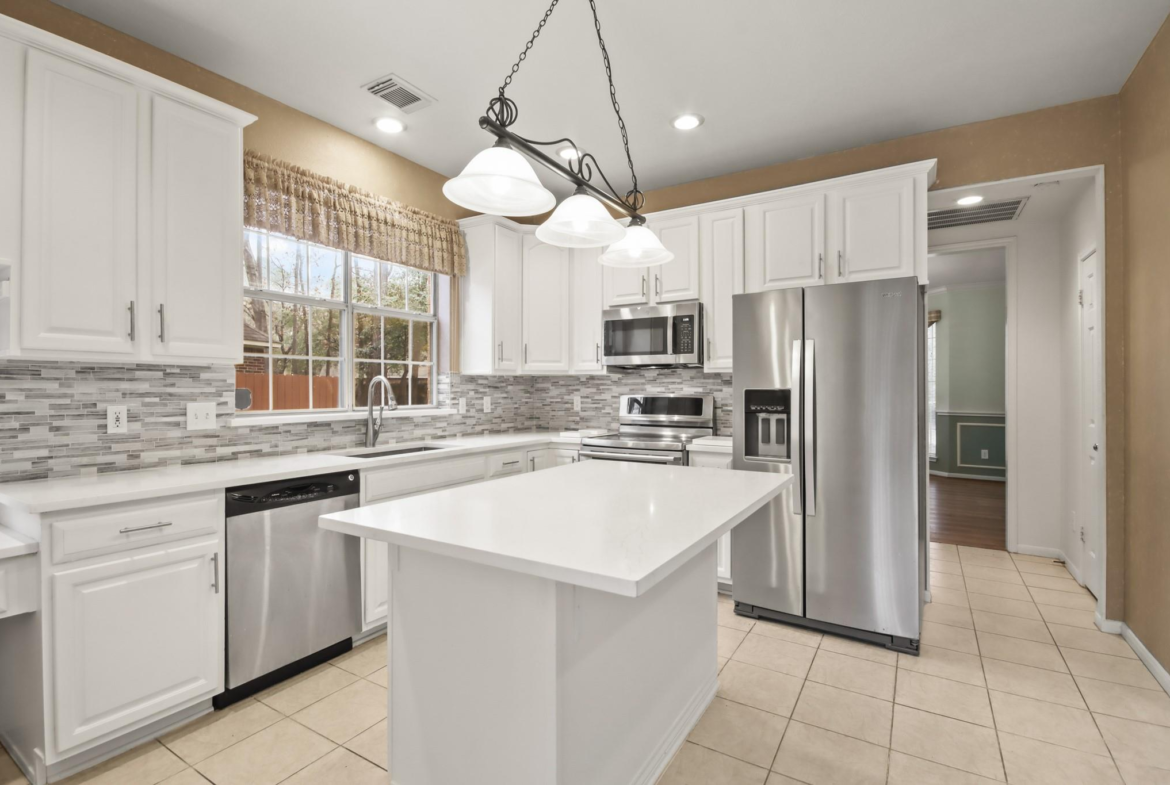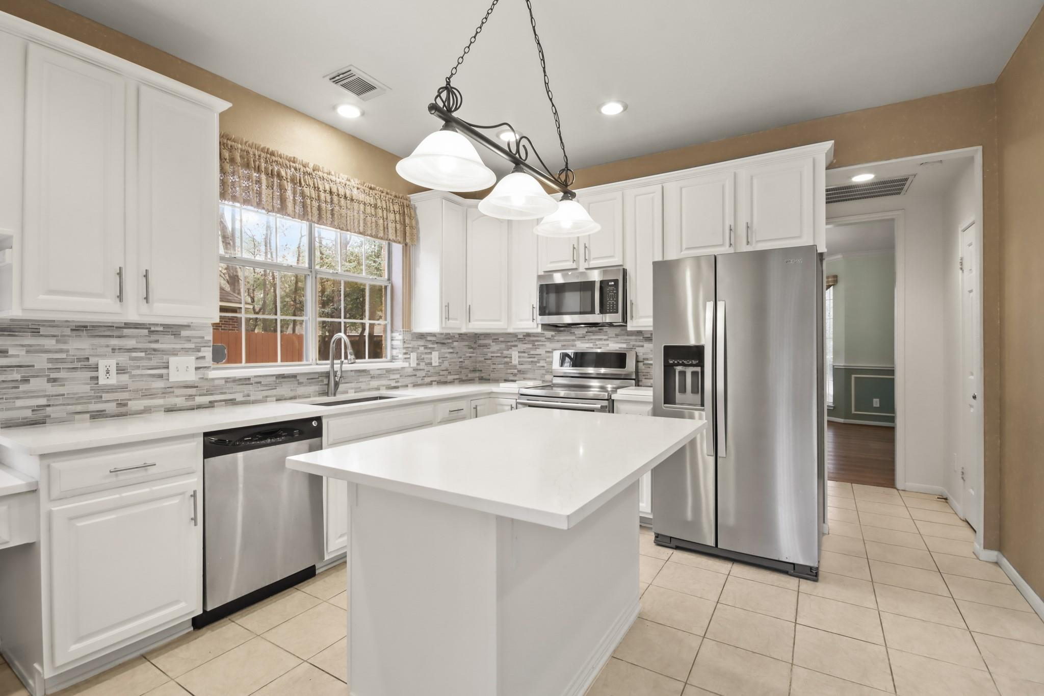 111 South Dreamweaver is a four-bedroom, two-and-one-half bathroom single-family home in the Village of Grogan’s Mill that is immediately available for lease. This traditional style home boasts a recently remodeled primary bath, recent upgrades to cabinets, countertops, and appliances, a programmable thermostat, and updated luxury vinyl plank flooring throughout. Walk past the planter and trees in the front yard and step in to the home, with the study on your left, family room on your right, and formal living, dining, half bath, and the kitchen past the staircase ahead of you. Walk up the staircase to access the three bedrooms, the full bathroom, the primary bed, and the primary bath. The fenced backyard has tree cover, a patio, and a propane grill. There is a 2-car garage with additional room in the driveway. Pets on a case-by-case basis. $50 background check via Jointly if application is accepted. Schedule a Showing now!