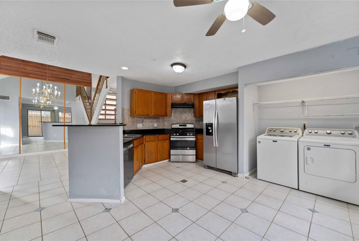 This inviting 3-bedroom, 2 full and 1 half bath home offers a warm, family-friendly layout with thoughtful features throughout. The primary suite is conveniently located downstairs, providing privacy and comfort. The vaulted ceiling in the living room creates an open, airy feel, while abundant windows fill the home with natural light. The kitchen and living spaces flow easily for everyday living and gatherings. Refrigerator, washer, and dryer stay with the home. A storage shed adds extra space for tools and hobbies. Major updates include a roof that is just 6 years old and a brand-new fence. There is also a generator for the home which offers added security and peace of mind year-round.