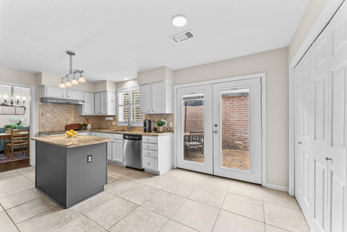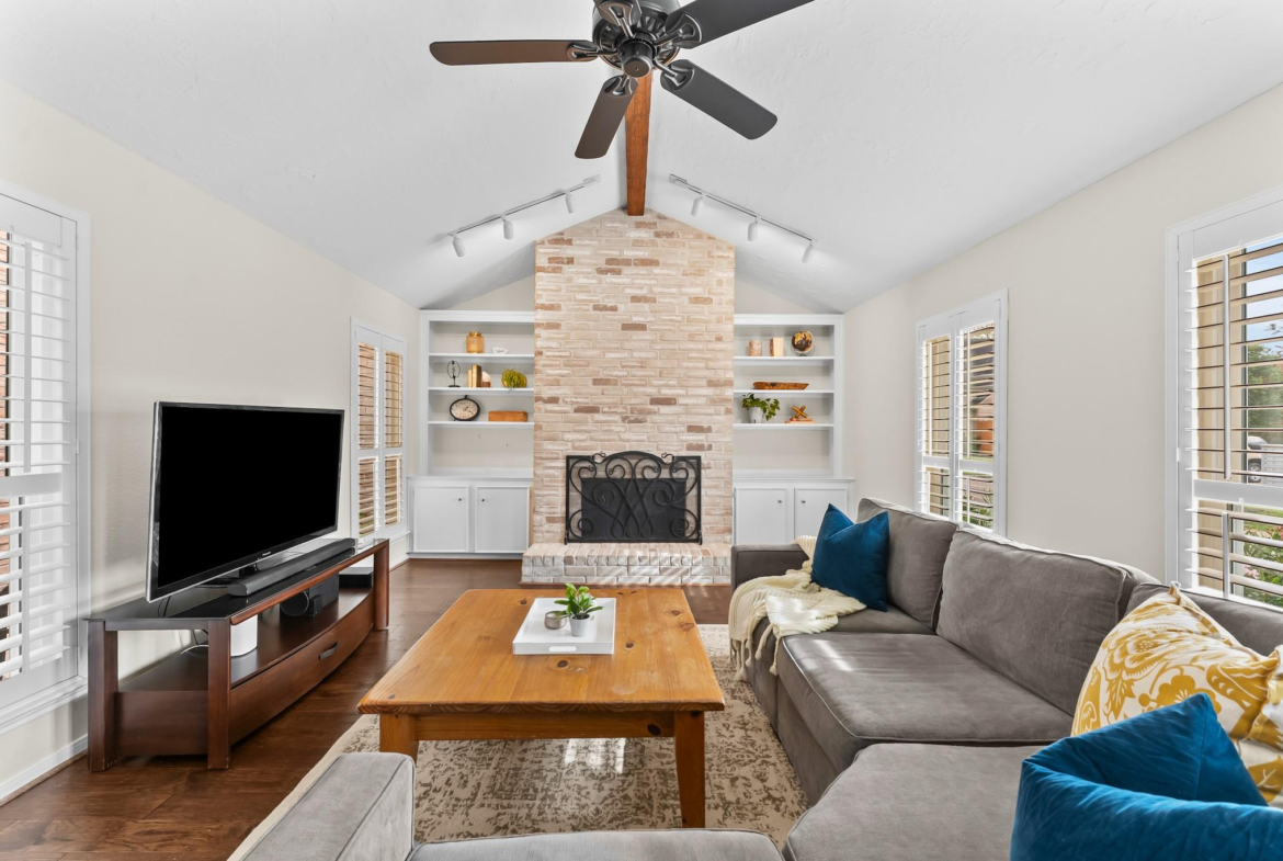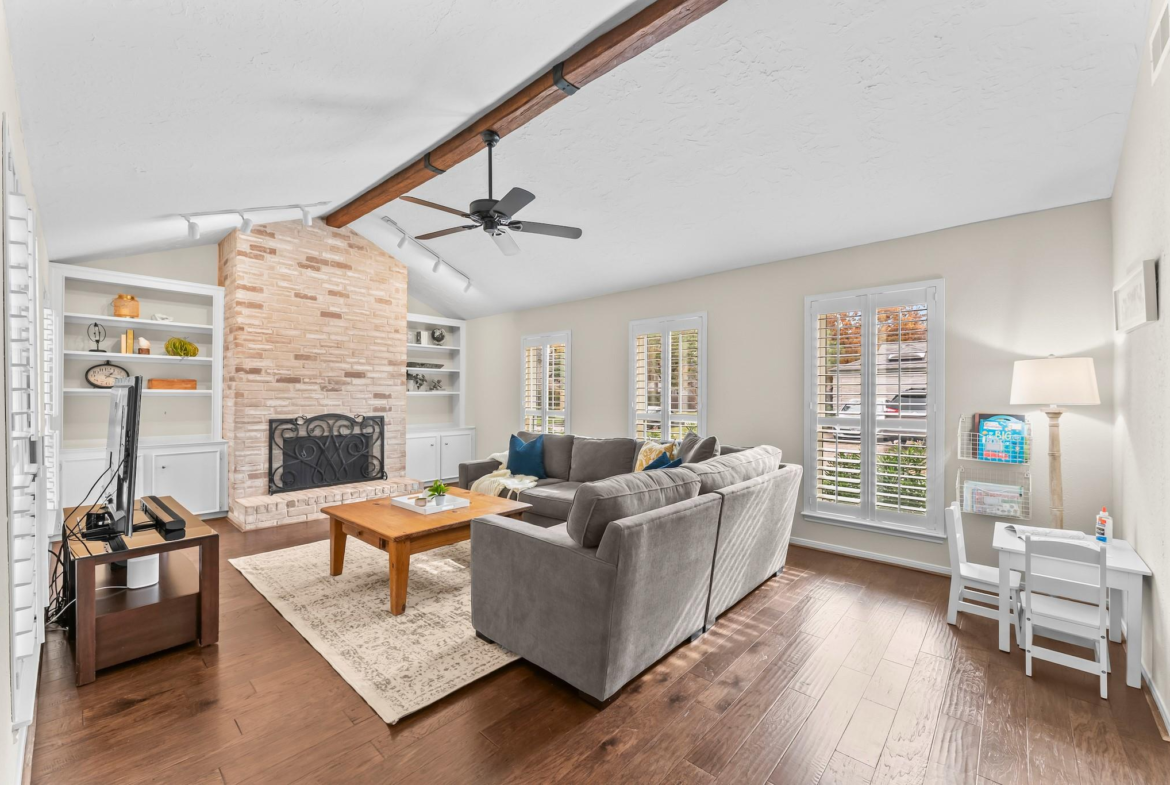 Set on a corner lot in the heart of Stonehenge, this light-filled one-story pairs classic finishes with an easy, versatile floor plan. Wood floors and vaulted ceilings create an airy flow from the spacious living room to the dining room and upgraded kitchen, designed for everyday comfort and effortless entertaining. The flexible 4-bed layout adapts to work, play, or guests, while the private backyard offers a landscaped retreat with a turfed play area and storage shed. Recent improvements include new windows, gutters, garage motor, and disposal, plus a transferable foundation warranty. Refrigerator, washer, and dryer stay. Tucked inside a welcoming pocket neighborhood with proximity to Energy Corridor offices and quick freeway access—ideal for streamlined commutes and connected living.