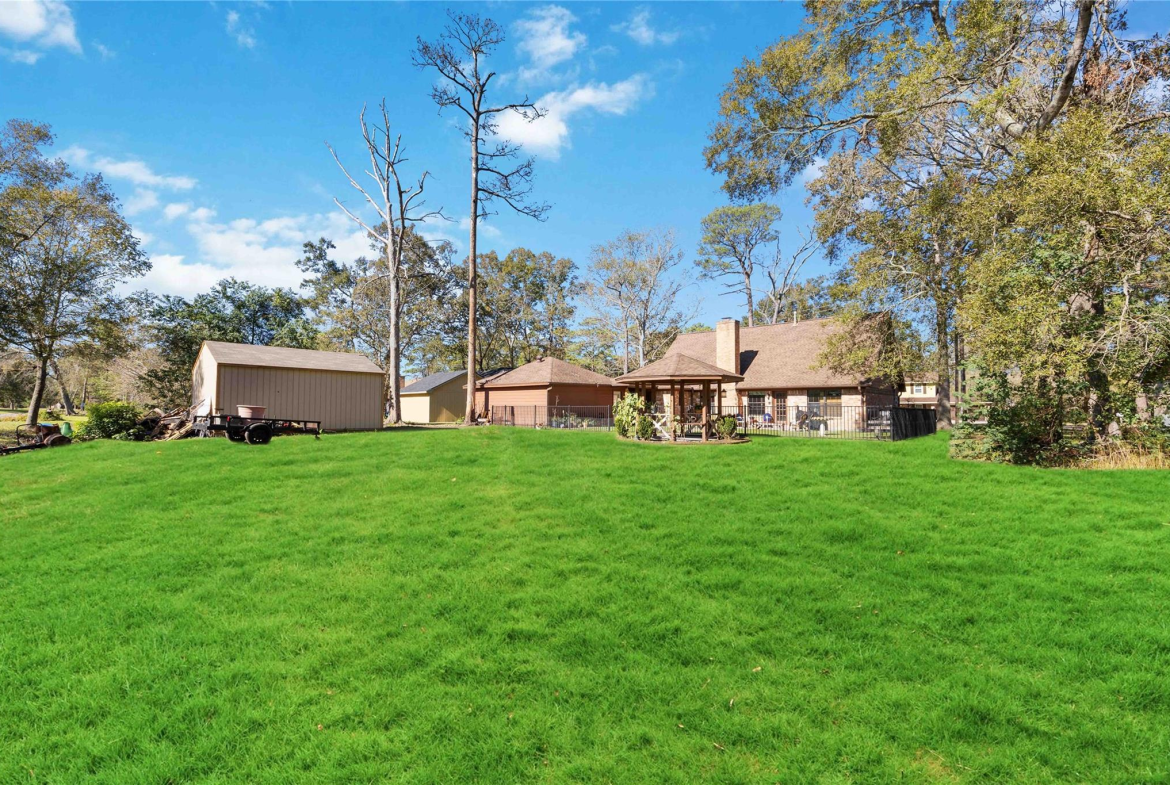 Retirement Dream- 2 blocks from fishing and boating! Step into this beautiful two-story gem in the highly sought-after Indian Shores neighborhood of Crosby. With two spacious living areas, this home is perfect for both entertaining and cozy family gatherings. The downstairs master bedroom is a true oasis, featuring a stunningly remodeled primary bath that will make every morning feel like a spa day. Upstairs, you’ll discover another full bath, a generous open family room, and two large secondary bedrooms—ideal for guests, kids, or a home office. Set on a generous lot with no back neighbors, your private backyard paradise awaits! Enjoy relaxing evenings in the charming gazebo, or take advantage of the convenient 16×20 storage building for all your outdoor gear and hobbies.