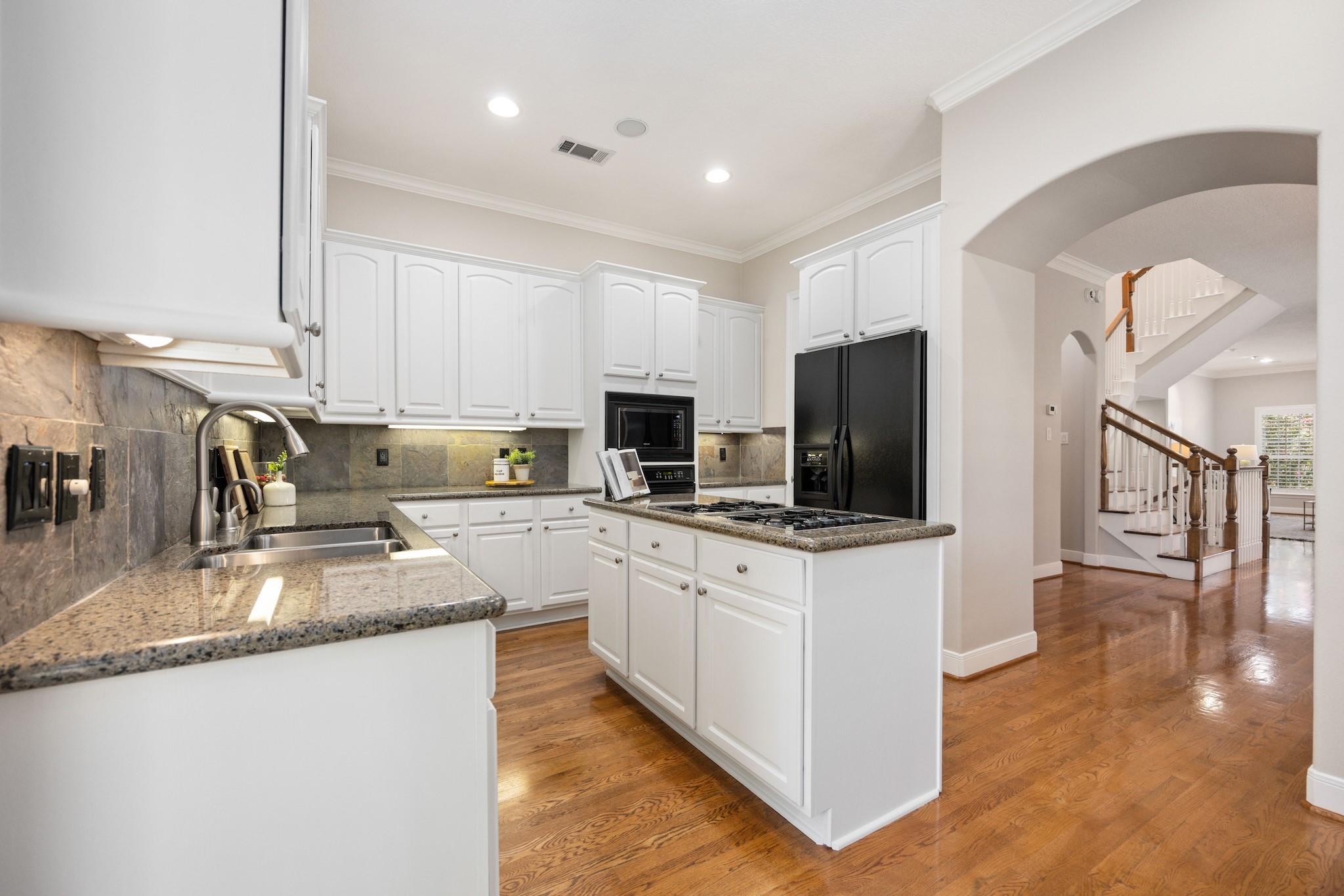 Welcome to this beautifully maintained Rice Military home featuring an elevator, PRIVATE driveway and spacious backyard on one of the area’s widest streets. Step off the elevator onto the second floor and into the living room with beautiful flooring, gas fireplace, plantation shutters, and surround sound. The kitchen offers great storage, a walk-in pantry, gas cooktop and it opens to a breakfast room and is steps from the formal dining. The large covered balcony is perfect for grilling. Upstairs, the oversized primary suite boasts two large closets and a recently updated spa-like bath with exotic granite, a jetted tub, and a luxurious shower. Both secondary bedrooms feature ensuite baths and walk-in closets. The first-floor bedroom with a wet bar and French doors to the backyard makes a great home office. Outside, enjoy lush landscaping, dual water features, and a pergola. Smart home features include programmable lighting, LED art lights, landscape lighting, and an EV-ready outlet.