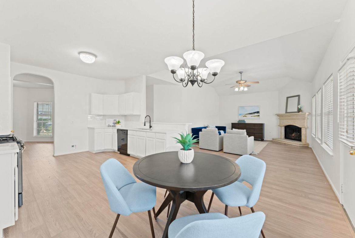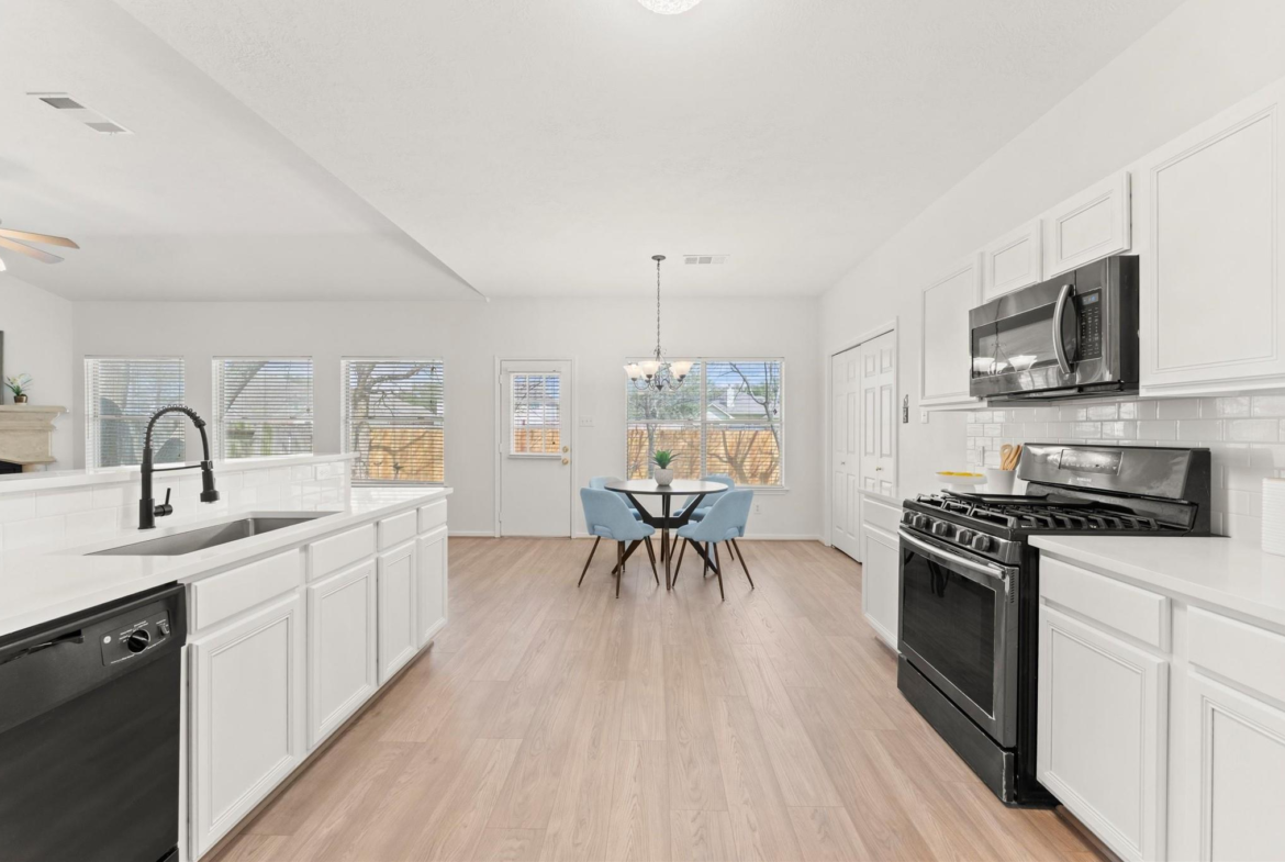 Enjoy this move-in-ready 3-bed, 2-bath home located in Spring. Blending comfort with modern updates, you’ll feel right at home. Upon entry, you’ll be welcomed by a versatile flex space at the front of the home, ideal as a dining room, office, or a formal living room. You’ll love the vaulted ceilings and new LVP flooring in the main living spaces. The home’s layout flows seamlessly from the living room, where you’ll find a cozy fireplace as a focal point, to the kitchen for everyday living and entertaining. The refreshed kitchen features new quartz countertops, freshly painted cabinetry, and updated finishes, while all bedrooms offer new carpet. The large primary suite includes an en-suite with a walk-in oversized shower. Major updates include a roof replaced in 2022, a tankless water heater in 2022, and a recent HVAC system. Step outside to enjoy a fully fenced backyard with no rear neighbors, offering added privacy and space to relax or entertain.