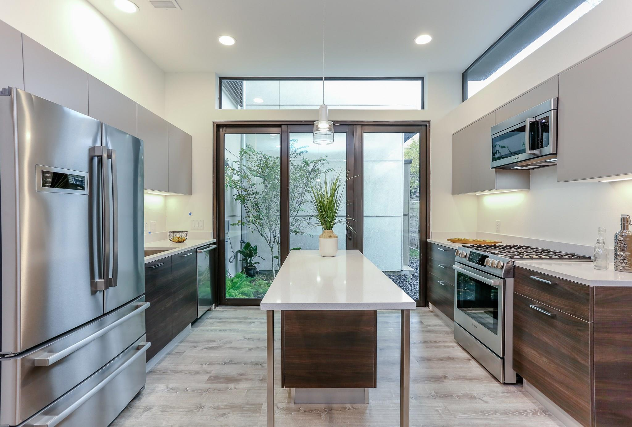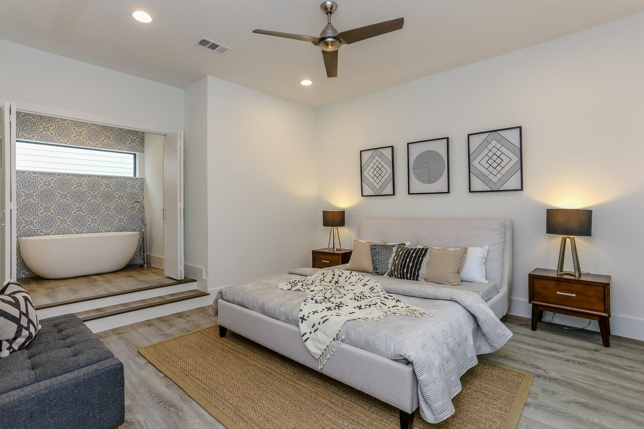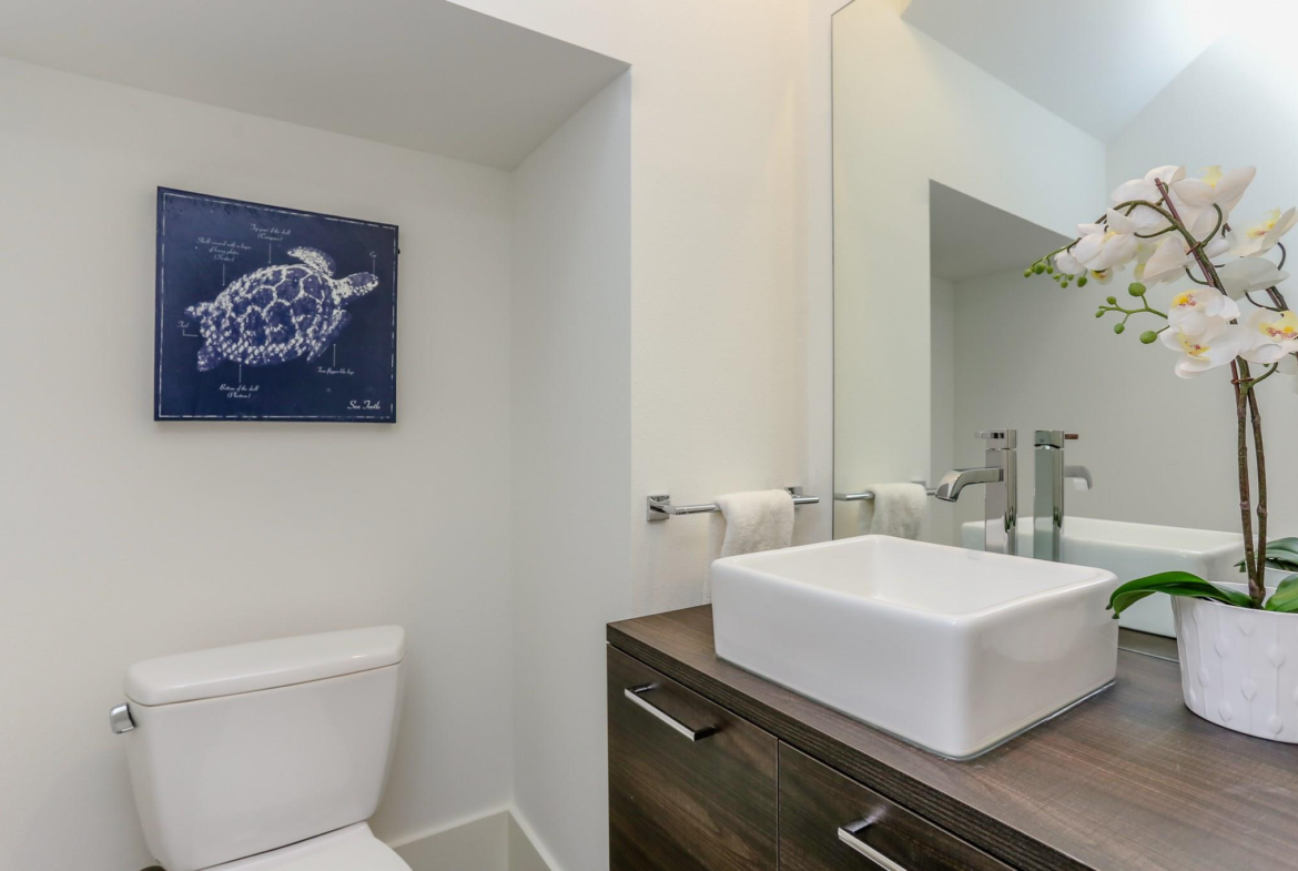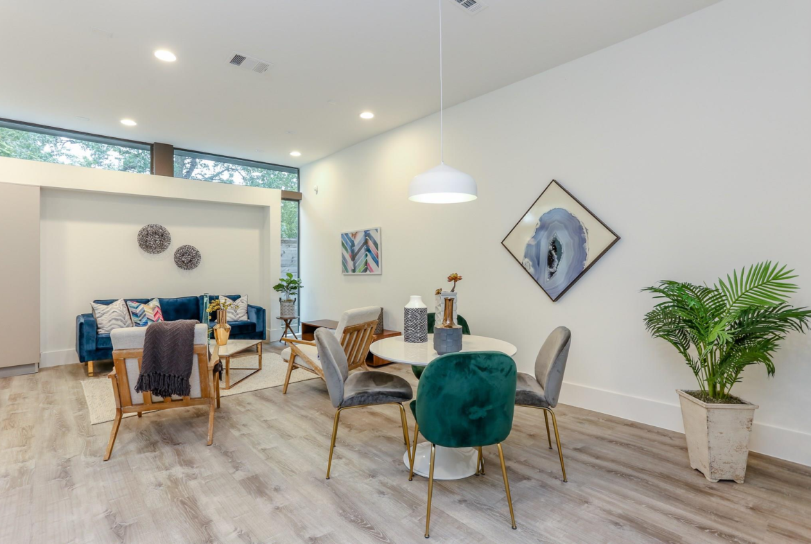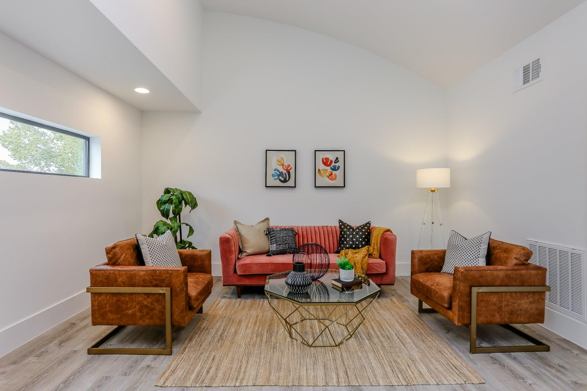A sanctum of inner-city chic awaits at the corner of Saltus and Sampson Streets. Sophisticated and spacious, this contemporary home offers first-floor living with wide-plank flooring, high ceilings, European-style cabinetry, and a versatile third-story game room. The refined living area spills out to the terrace and garden, conveniently located just off the kitchen. Prepare to be impressed when you enter the inspired and dramatic second-floor primary retreat. Experience a contemplative soak in the generous freestanding tub positioned against a tasteful backdrop of decorative porcelain tile. An ample laundry room, two additional bedrooms, and a hall bathroom are also on the second level. Ascend the unique floating staircase to a flex space with soaring, vaulted ceilings that mirror the elegant curve of the dwelling’s arched roof, another full bath, and a vast rooftop balcony. Striking architecture, distinctive design, and the perfect location to enjoy a relaxed, easy lifestyle await.