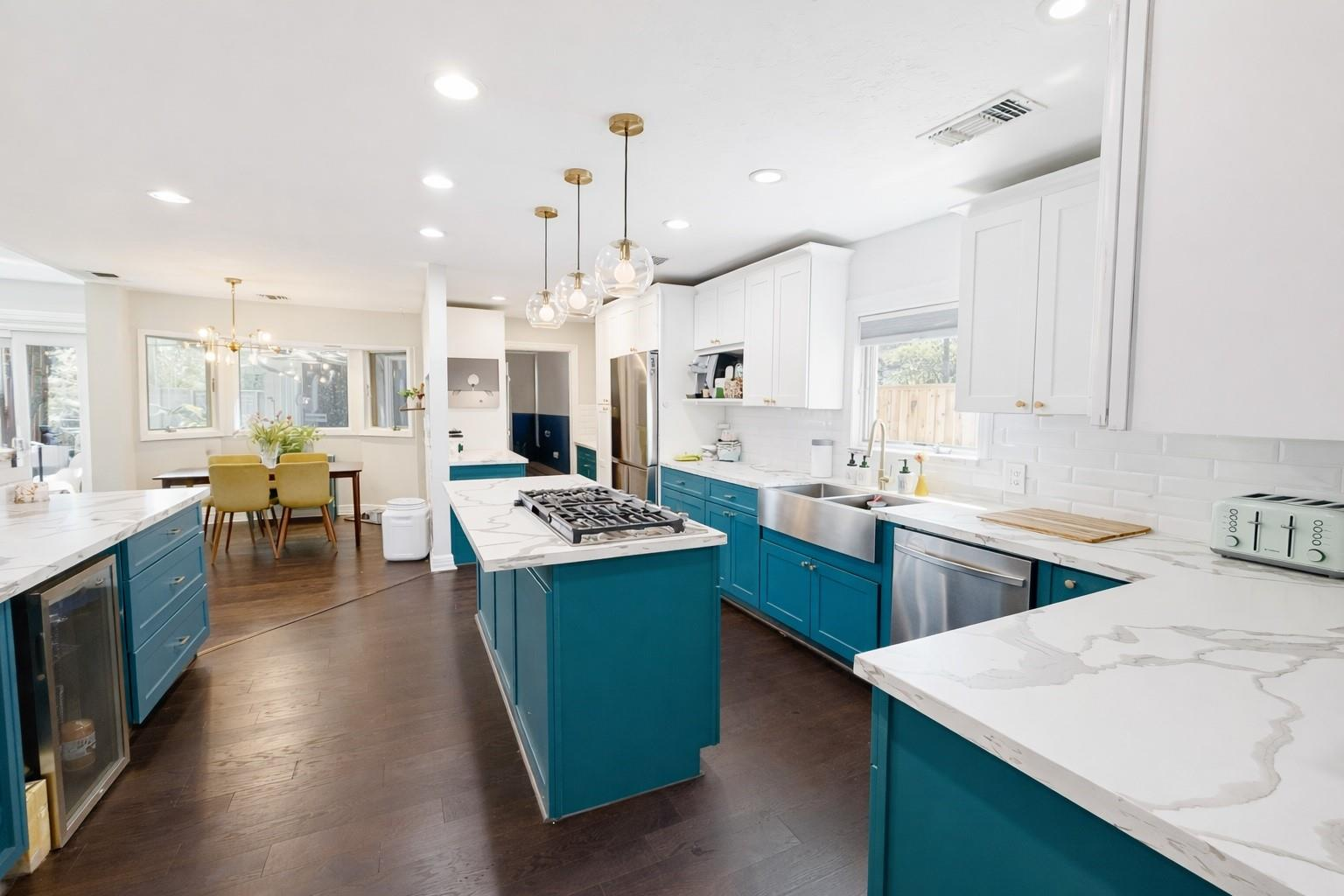 One-of-a-kind home offering 3,788 sq ft of stylish living with 5–6 bedrooms and flex space to fit your needs. The first-floor owner’s retreat provides a private escape, the main living area features wood floors, 10′ tray ceilings, and abundant natural light. No carpet throughout. The refreshed kitchen w/ designer touches opens seamlessly to the living and dining areas, perfect for gathering and entertaining. Step outside to your own backyard retreat featuring a resurfaced saltwater pool w/ updated equipment… ideal for relaxing, hosting, and enjoying year-round outdoor living. Covered veranda w/ outdoor kitchen potential adds even more to the experience. Custom landscaping and an extended driveway offer excellent curb appeal and plenty of parking. Designed to comfortably accommodate a variety of living arrangements. Ideally located near the Texas Medical Center and NRG Stadium, just minutes from Texans games, the Rodeo, and the upcoming FIFA World Cup. Zoned to Bellaire High School.