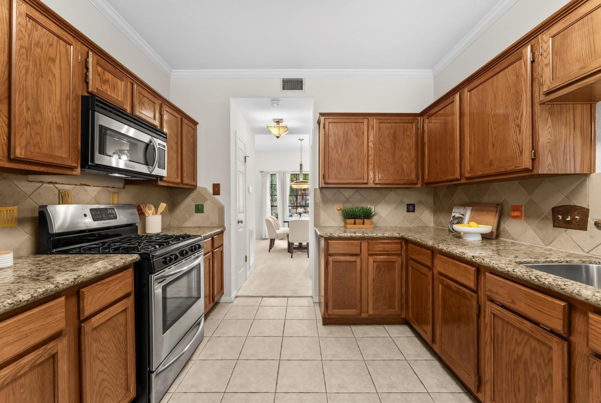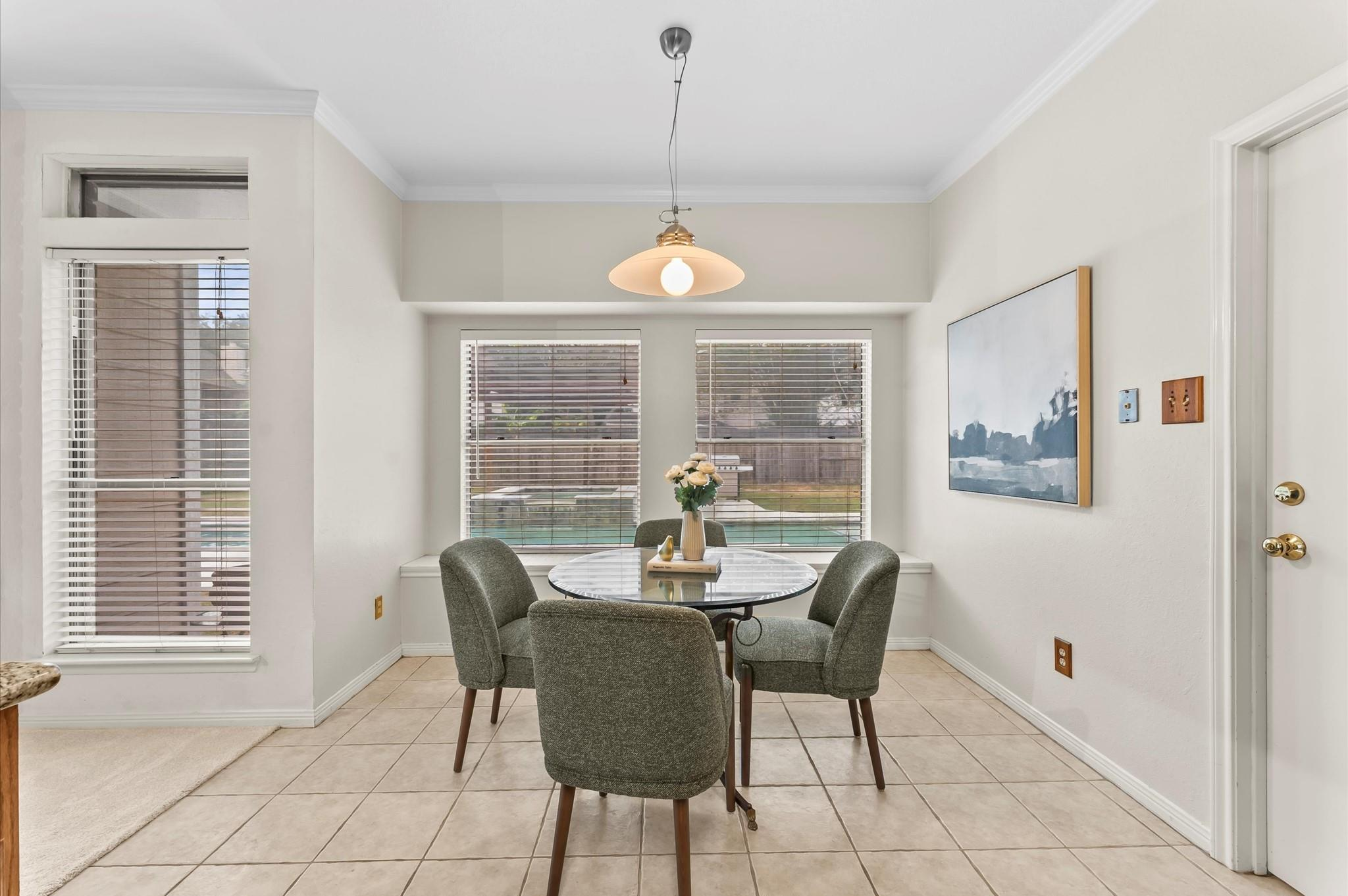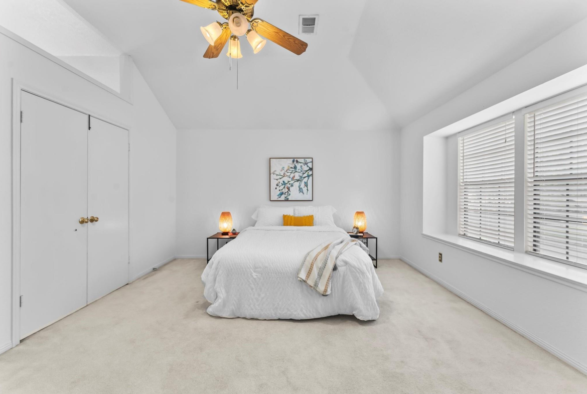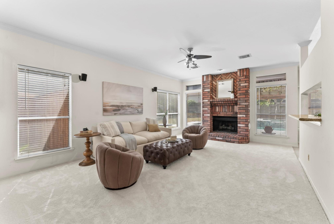 Looking for space, comfort, and a backyard made for fun? This comfortable 2-story home offers a great layout with plenty of space for all. The living room, featuring a brick hearth fireplace, opens to the breakfast room, where a cozy window seat invites morning coffee or afternoon daydreams. The kitchen has granite counters, stainless steel appliances, and a breakfast bar that overlooks the living room. There’s also a formal dining room that could easily be utilized as an office or creative space. Upstairs, a game room with built-in shelves anchors the secondary bedrooms. The split floor plan offers privacy and functionality, with two secondary bedrooms and a shared hall bath on one side, and a spacious primary suite tucked away on the other. The primary bath has two walk-in closets, double sinks, a jetted tub, and a separate shower. Step outside to enjoy a pergola-covered hot tub, a glistening pool, and a large patio, perfect for a relaxing weekend or entertaining guests.