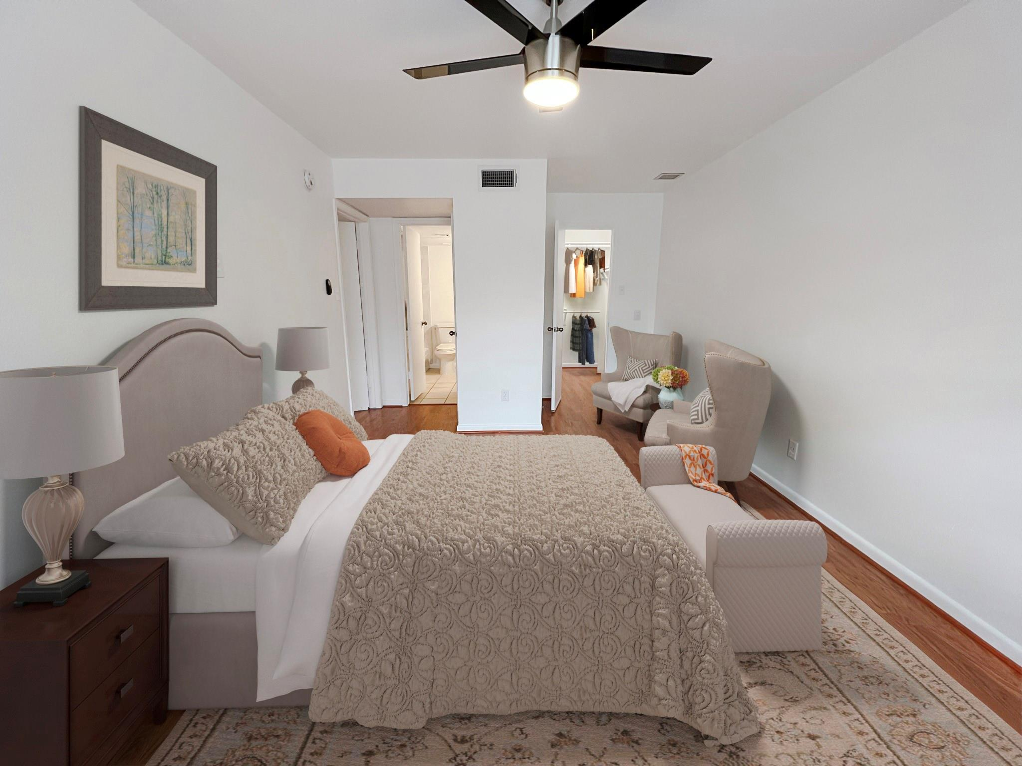 Location, Location! Updated 1/1 condo in The Grovewood Condos, a completely gated community. This 2nd level unit was updated 2 years ago with all laminate wood flooring, kitchen backsplash, hardware, tile in the shower, toilet, bathroom sink and hardware, refrigerator and dishwasher. Unit has great natural light and new modern ceiling fans. Large bedroom has a sitting area and two closets. Refrigerator, washer and dryer are included. Unit comes with one assigned parking space. Within walking distance to the YMCA, restaurants and shopping. Don’t let this one pass you by and schedule your appointment today!