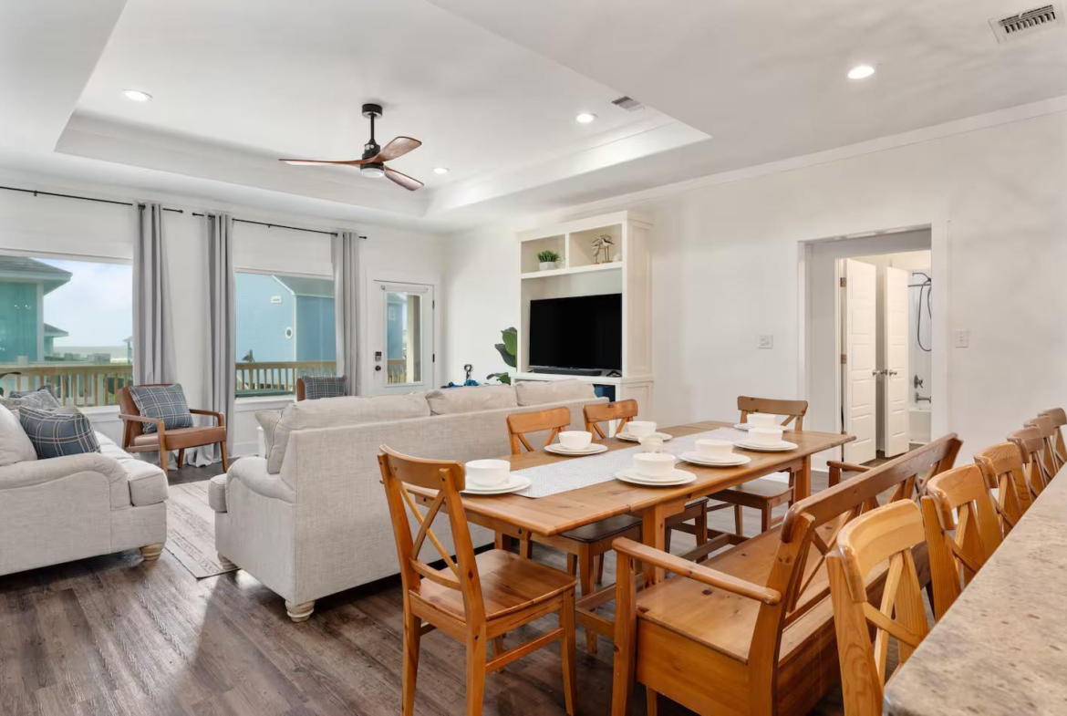 BEAUTIFULLY updated 4 bedroom just steps from the Beach with Beach Views for under $550K!! Come experience custom murals, thoughtfully designed interior, and the beautiful sights and sounds of the Gulf Coast. Sold fully furnished and setup to sleep 16, you can bring the entire family to share the beach life in style- or utilize as an STR and let your guests pay your bills for you! Just a short walk from the beach.