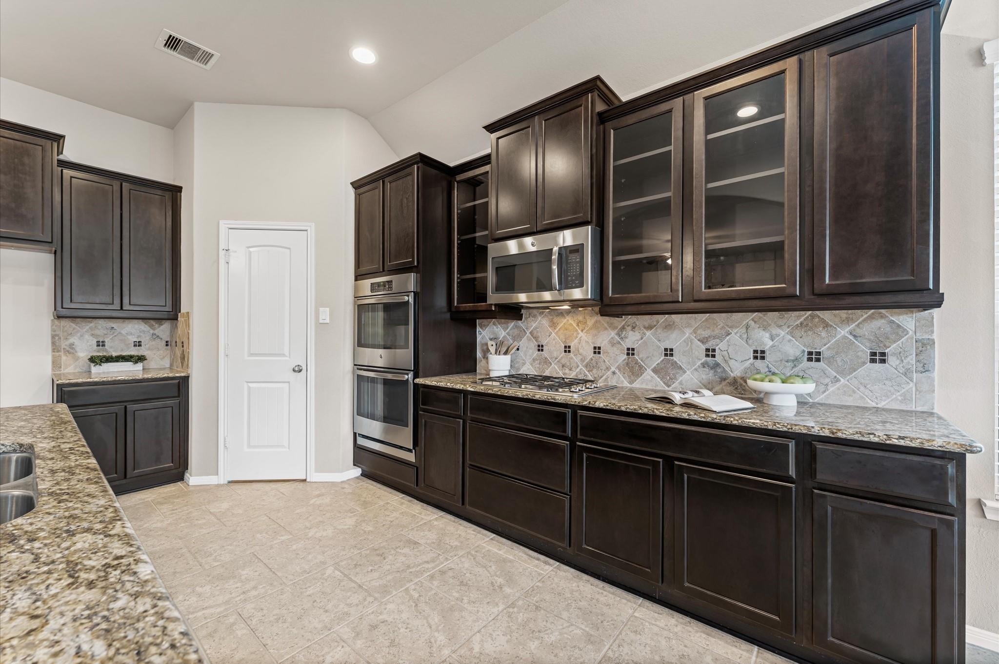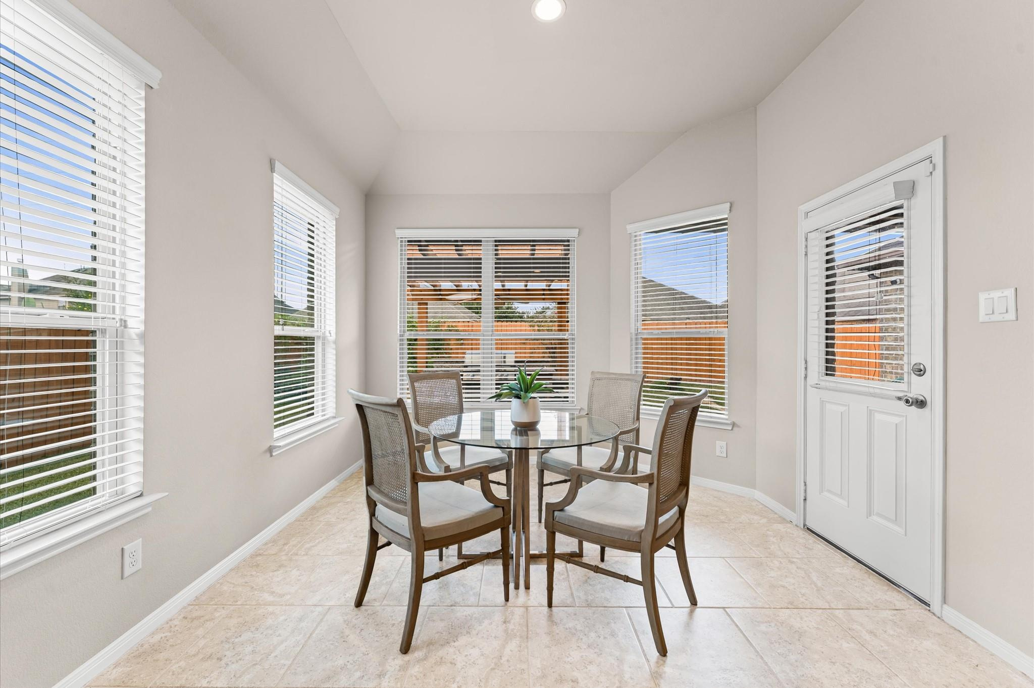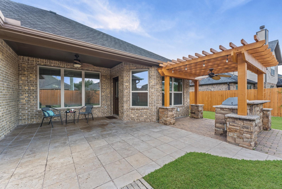 This beautiful home perfectly blends style, function, and comfort. A formal entry leads to an interior featuring a versatile dining room or home office tucked behind French doors. The kitchen features granite countertops, tile backsplash, breakfast bar and walk-in pantry. The sunlit breakfast room flows into a large family room, featuring a stone-surround fireplace. The primary suite easily accommodates king-sized furniture with room to spare for a sitting area. Its spa-like bath features a dual sink vanity, garden tub, separate shower, and a large walk-in closet. Secondary bedrooms share a hall bath equipped with a jetted, walk-in tub. The beauty extends outdoors to a covered patio as well as a pergola with built-in grill. This home comes equipped with solar panels and a whole-home generator, offering energy savings and peace of mind no matter the weather. Community amenities include a clubhouse, fitness center, playground, pool, splash pad, and walking trails.