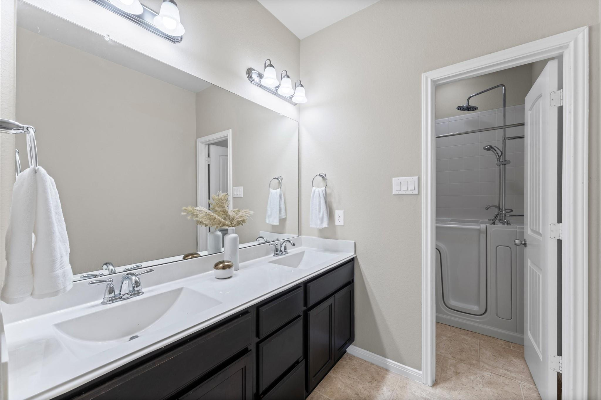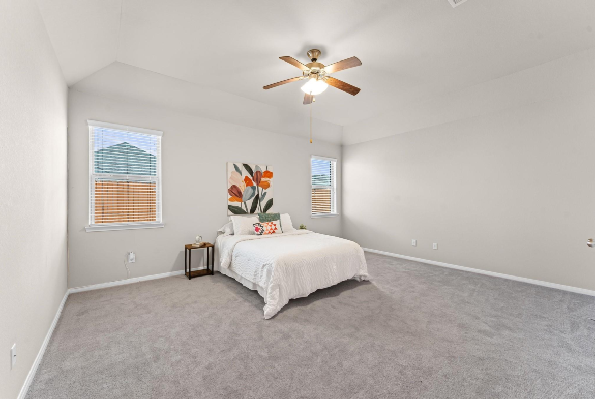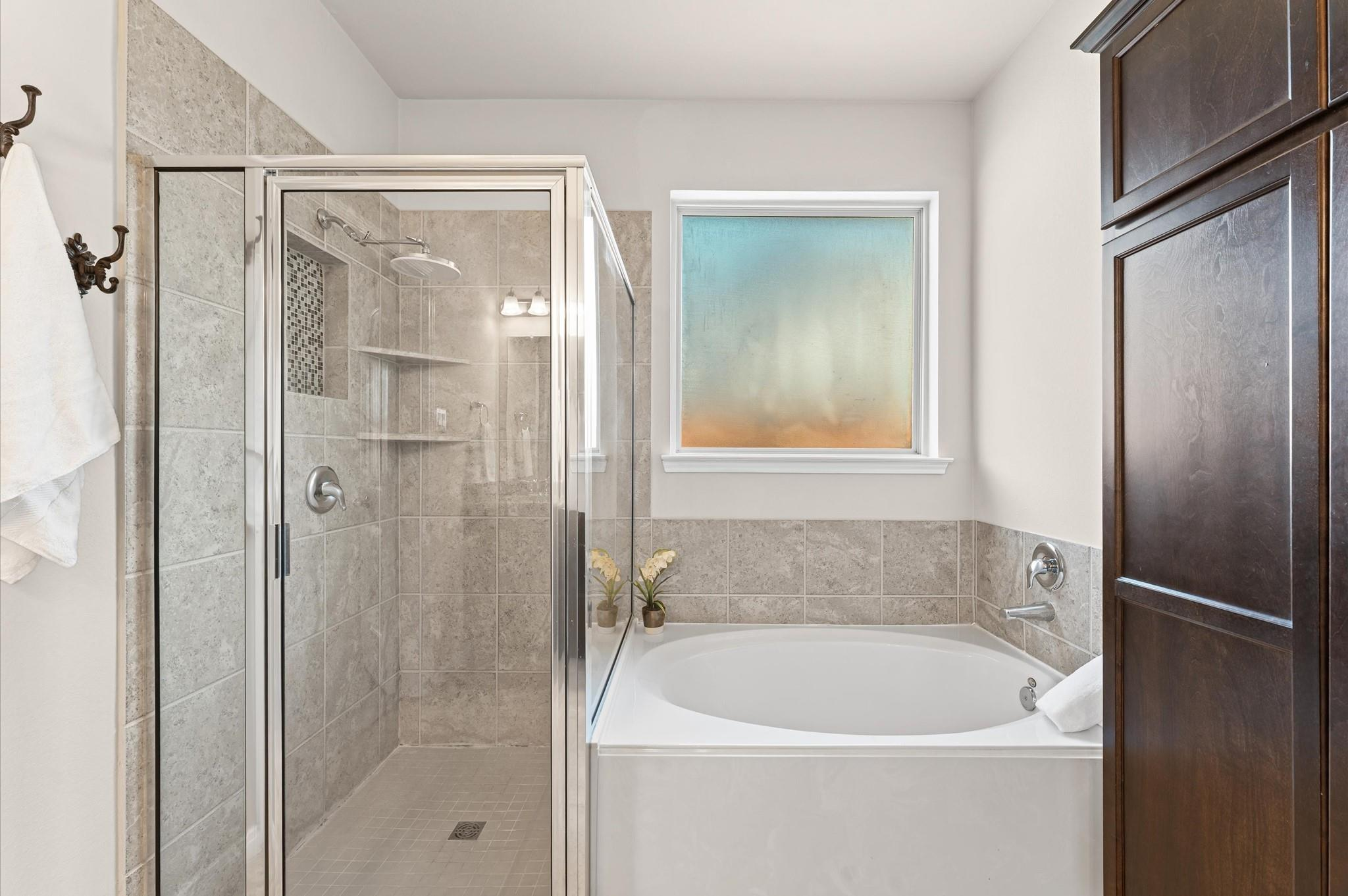 This beautiful home perfectly blends style, function, and comfort. A formal entry leads to an interior featuring a versatile dining room or home office tucked behind French doors. The kitchen features granite countertops, tile backsplash, breakfast bar and walk-in pantry. The sunlit breakfast room flows into a large family room, featuring a stone-surround fireplace. The primary suite easily accommodates king-sized furniture with room to spare for a sitting area. Its spa-like bath features a dual sink vanity, garden tub, separate shower, and a large walk-in closet. Secondary bedrooms share a hall bath equipped with a jetted, walk-in tub. The beauty extends outdoors to a covered patio as well as a pergola with built-in grill. This home comes equipped with solar panels and a whole-home generator, offering energy savings and peace of mind no matter the weather. Community amenities include a clubhouse, fitness center, playground, pool, splash pad, and walking trails.
